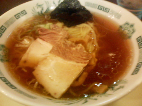 初めてなので、中華そばを食べてみました。鶏ガラ醤油のスープは、390円にしては美味しいですが、化学調味料でガッチリ調整しています。麺もちょうど良い歯ごたえはあるものの、あまり味がしません。