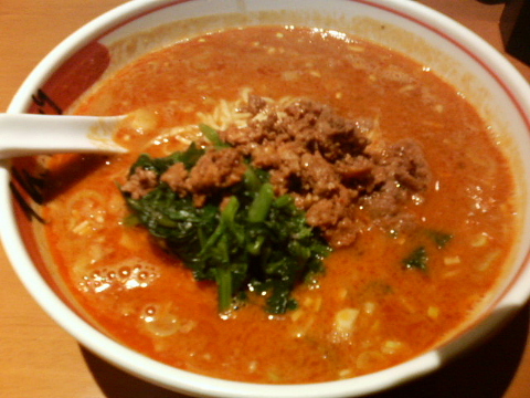 今回は、麻辣担担麺をチョイス。前回は、担々麺と思いきや、麻婆豆腐がのっている醤油ラーメンというフェイントをかけられたので、今回はちゃんとメニューを見て、麻辣担担麺にしました。