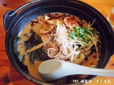 スープは、ちょっとしょっぱめなんですど、それだけでなく、コクのあるものって感じで。どうやったらこういう味になるのかな。味噌は赤味噌中心のようですが、たぶんこの味噌にポイントがあるのかな、と。どこかで食べたことのある味なんだけどな。奥さん曰「韓国のお味噌に似た味のものがある」そうなのですが、聞いてみたところ、味噌は日本のお味噌とのこと。もう少し突っ込んで聞いてみれば良かったかな。スープの香ばしさは、浮かべてある香味油によるもの。何となく、マー油のようでもあるのですが、それにしては、この油自体にしっかり味がついているようにも思えます。
