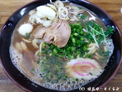 まず、スープを啜ってみると、なるほど、魚の風味を感じました。ちょっとえぐみがあるくらいのものですが、魚が苦手だという人はともかく、同時に入っている豚骨スープが濃厚なので、それほど気にはなりません。うーん、鮪っちゃあ鮪の味かなあ。今流行の豚骨魚介系の派生で、しょっぱいというかえぐいというか、ちょっと攻撃的な味です。ネギが多めなのは、魚の臭み消しかなあ。