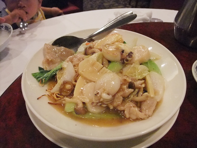 奥さんが食べたのは、「五目あんかけ焼きそば」。ここで食べるメニューじゃないかもしれませんが、やっぱり中華料理店の焼きそばは旨いなあ。