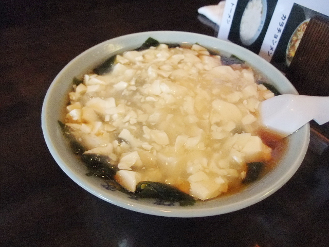 豆腐の餡掛け自体は、そんなに味があるわけではないですが、下のスープが濃い味付けなので、全体としてはちょうど良いあんばいになっています。