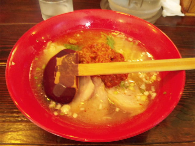 塩スープの上に、激辛特製赤丸ダレという名の肉味噌が乗っかっているもの。たぶん、それ以外は基本形と同じだと思います。