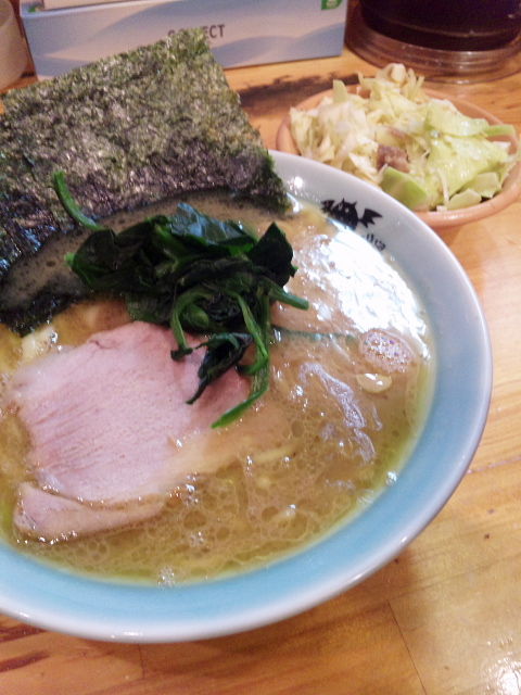 本番のラーメン。スープはさすが姉妹店、六角家テイスト。違いといえば、こちらの方が鶏が強いかなあといった感じ。家系ではあっさりだけど旨味は十分。