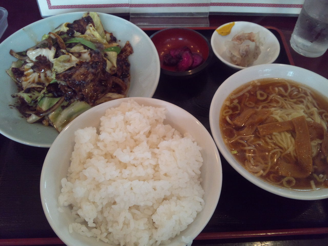 今週の大龍ランチは、「回鍋肉」。それにライス、ミニラーメン、小皿、お新香が付いてきます。