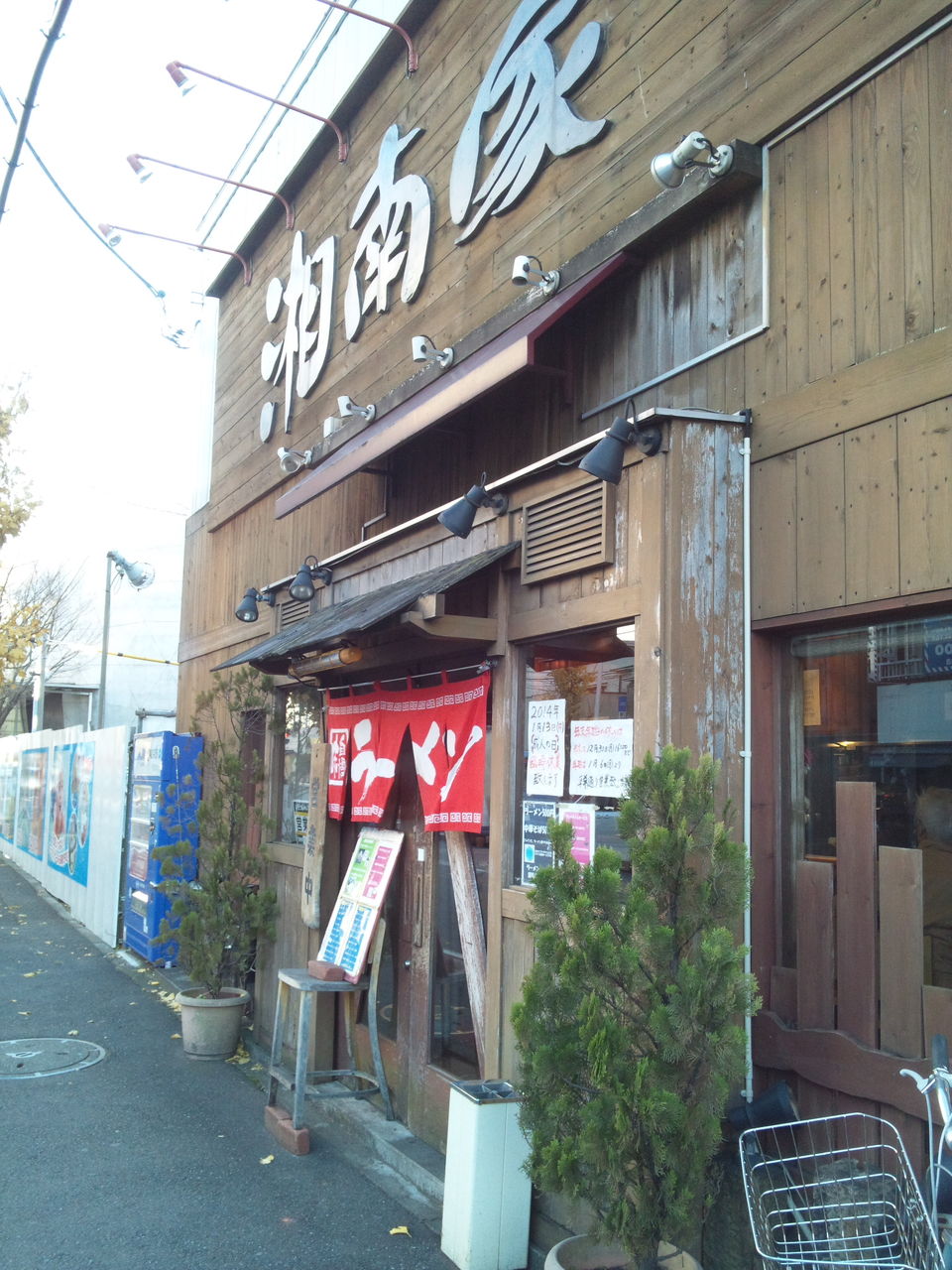 2013年12月25日 湘南家@湘南台 ラーメン(500円) 湘南台にある、家系ラーメンのお店。 山の中にあるのに湘南家。いつも違和感があります。 カウンター席がメインで、テーブル席もあります。 駅から少し遠いので、駐車場は店舗の裏にあります。 スタンダードメニュー。ワンコインなのに、ランチタイムはライスが無料で付いてくるという物凄いコストパフォーマンス! スープは、高座豚でダシを取ったものだそう。 ただ、正直に言うと、このスープがだいぶライトで家系としてはちょっと物足りないですね。コクがあまりないです。 しかし、この価格なのにチャーシューが2枚付いてくるのは素晴らしい。 ライスと合わせて、ワンコインで本当にお腹いっぱい。ごちそうさま。 323杯目/2013年 【お店詳細(食べログ)】 湘南家 昼総合点★★★☆☆ 3.6 関連ランキング:ラーメン | 湘南台駅 「藤沢市」カテゴリの最新記事 < 前の記事次の記事 > コメント コメントフォーム 名前 コメント 評価する リセット リセット 顔 星 投稿する 情報を記憶 トラックバック