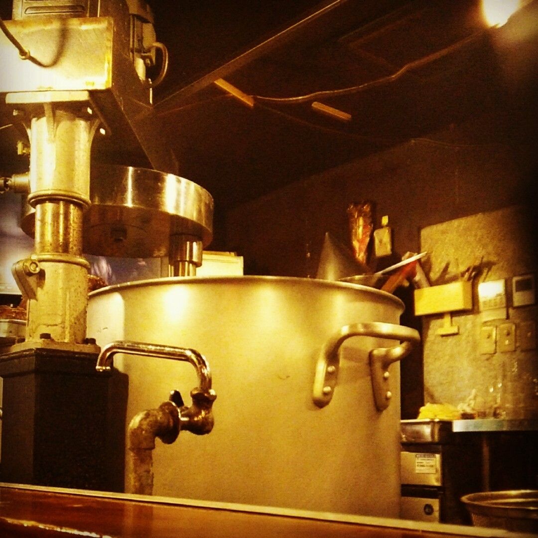 そうそう。いつだったか、誰かが「最近は、寸胴をかき混ぜる際に、工業用の機械を導入するお店がある」と話していたのですが、ここのこれ、そうですよね?
