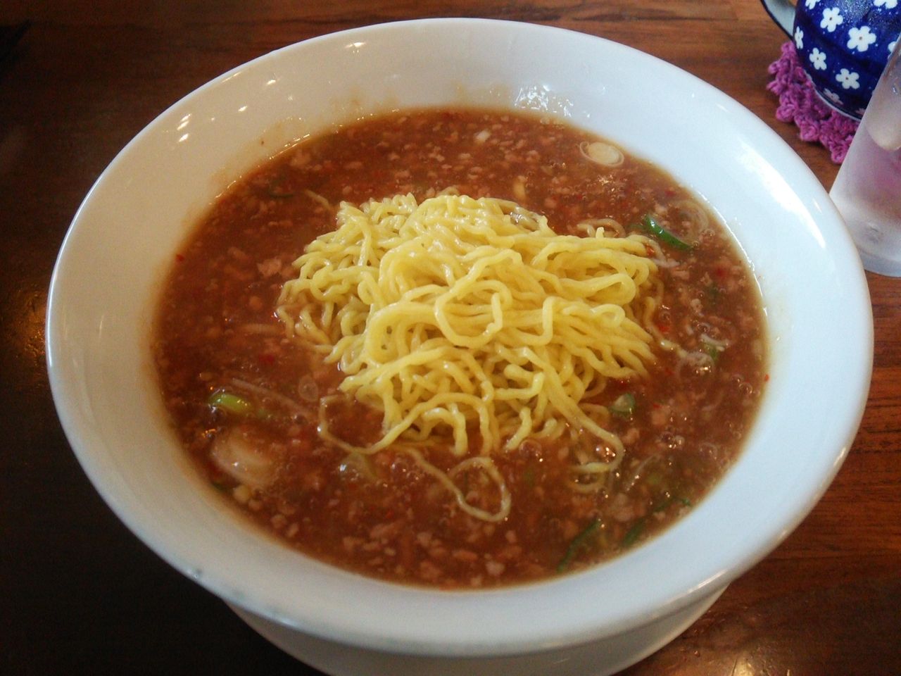餡掛けタイプの担々麺は他の場所でも見ることはありますが、ここは餡掛けのスープの上に麺が鎮座在しており、この餡を麺によく絡ませていただきます。