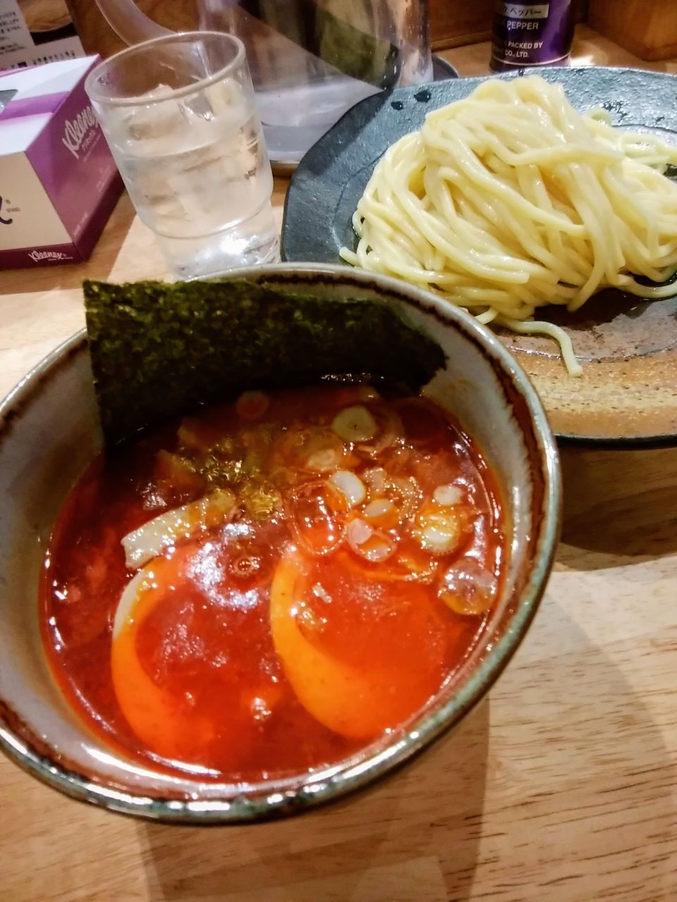 ノーマルのつけ麺に辛味MAXをトッピング。ちなみに辛味は無料です。