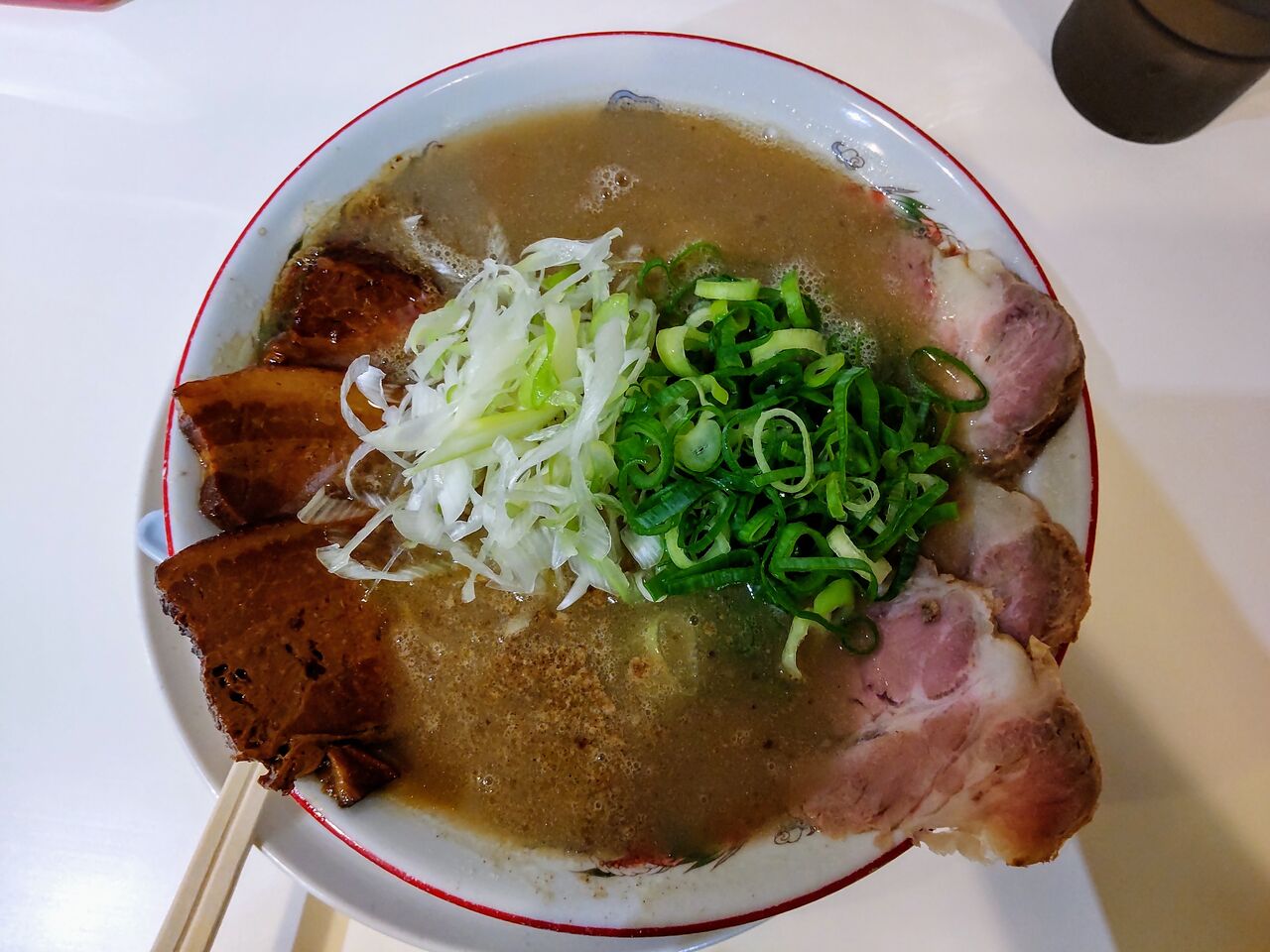 2022年08月24日 八ちゃんラーメン新横浜ラーメン博物館店@新横浜(横浜市港北区新横浜) ちかっぱチャーシューメン 1,350円 オープン以来久しぶりの八ちゃんラーメン新横浜ラーメン博物館店@新横浜(横浜市港北区新横浜)。 TRYラーメン大賞2020年新人賞豚骨3位のお店。博多薬院に本店があり、50年以上の歴史のある銘店。営業時間が深夜帯のみと言うことで、高難易度のお店で有名でした。 どうせならということで、新横浜店限定のちかっぱチャーシューメンをいただきました。「ちかっぱ」とは「すごい」という意味だそう。 確かに凄い。チャーシューの他にとろチャーが乗っちゃうお肉いっぱいの1杯。 結論から言うと、おじさんには辛い。豚骨スープもトロッとして油たっぷりで肉々しいのに、更にチャーシューと角煮。一つ一つは美味しいけれど、恐ろしいほどの胸焼け。 いや、誤解のないように言っておくと、美味しいんです。ただ、万全の状態で食べた方が良いですね。 今度は現在休止中の炒飯が食べてみたいなあ。ごちそうさま。 −杯目/2022年 【お店詳細(食べログ)】 博多・薬院 八ちゃんラーメン 新横浜ラーメン博物館店 関連ランキング:ラーメン | 新横浜駅 「横浜市港北区」カテゴリの最新記事 < 前の記事次の記事 > コメント コメントフォーム 名前 コメント 評価する リセット リセット 顔 星 投稿する 情報を記憶