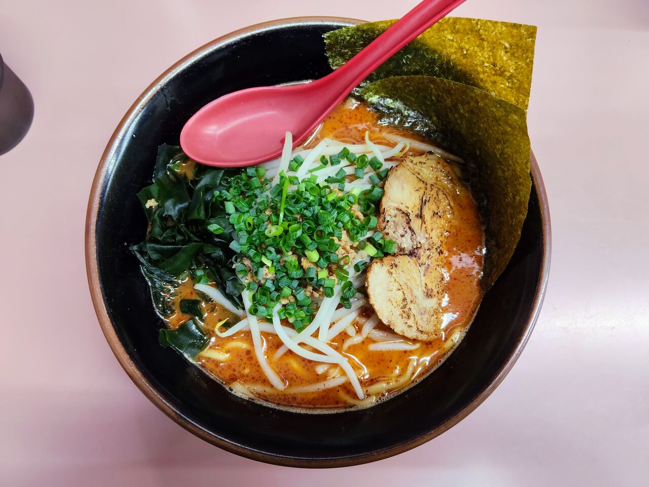 ピリ辛の味噌ラーメンで、個人的にはもう少し味薄目で辛めが好きですが、一般にはこのくらいが好まれるのかなと思います。